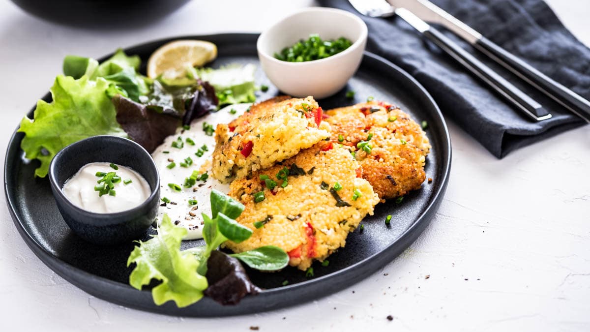 Diese Hirselaibchen mit Gemüse sind die perfekte vegetarische Alternative zu klassischen Bratlingen. Außen knusprig, innen weich – und dabei richtig lecker und gesund. Die Hirsebratlinge sind reich an Proteinen und Ballaststoffen und lassen sich ganz einfach selber machen. Zusammen mit einem cremigen Sauerrahmdip werden sie zu einem schnellen, gesunden Mittag- oder Abendessen, das der ganzen Familie schmeckt. Dieses Rezept ist ideal für alle, die eine einfache und vegetarische Mahlzeit aus Hirse und Gemüse suchen.