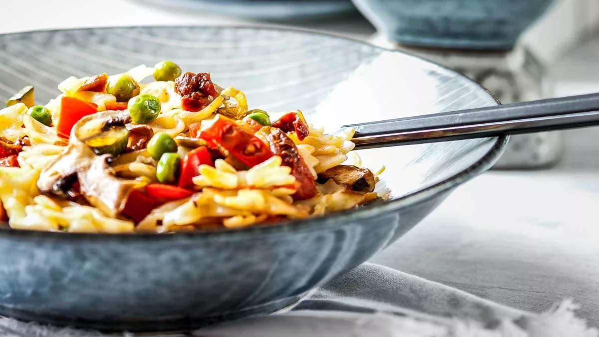 So einfach kochst du den vegetarischen Nudelsalat