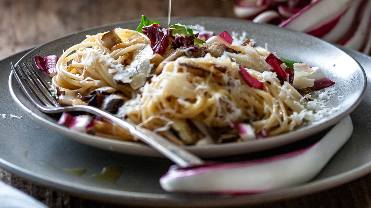 Tipp: Verwendet für diese Pasta mit Radicchio bitte nur Olivenöl der besten Güteklasse (das empfehle ich auch bei allen anderen Gerichten). Dieses Gericht braucht nicht viele Zutaten, aber diese sollten von bester Qualität sein. Dann ist es das Essen auch!